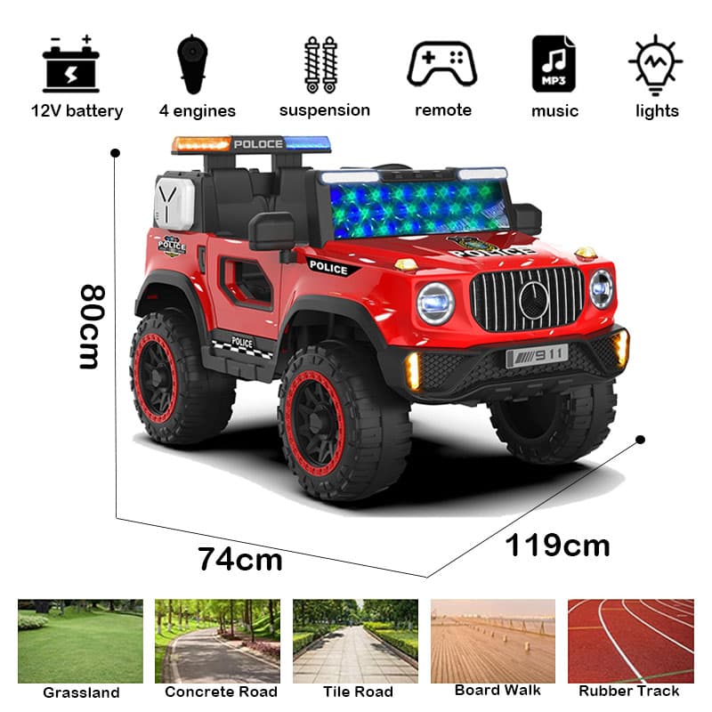 Luzes LED do pára-brisa do carro de polícia infantil de 12V